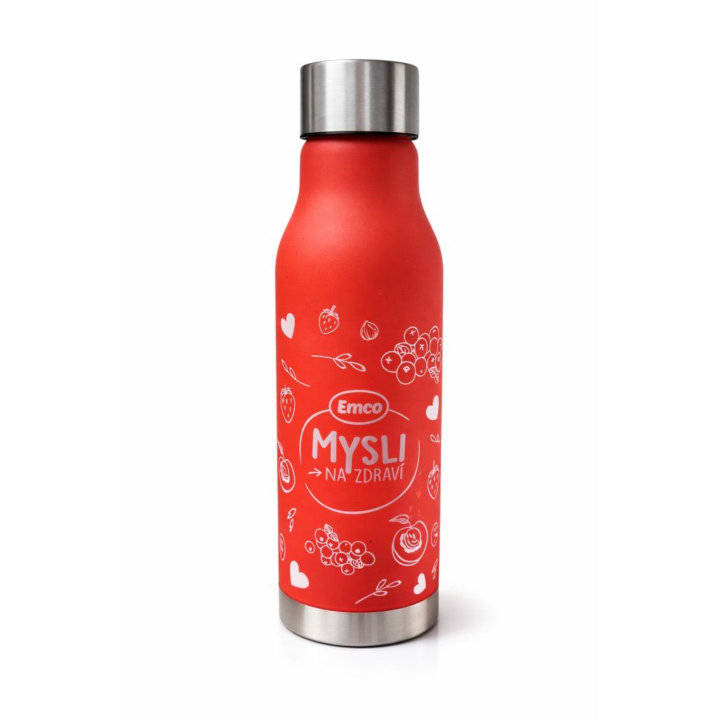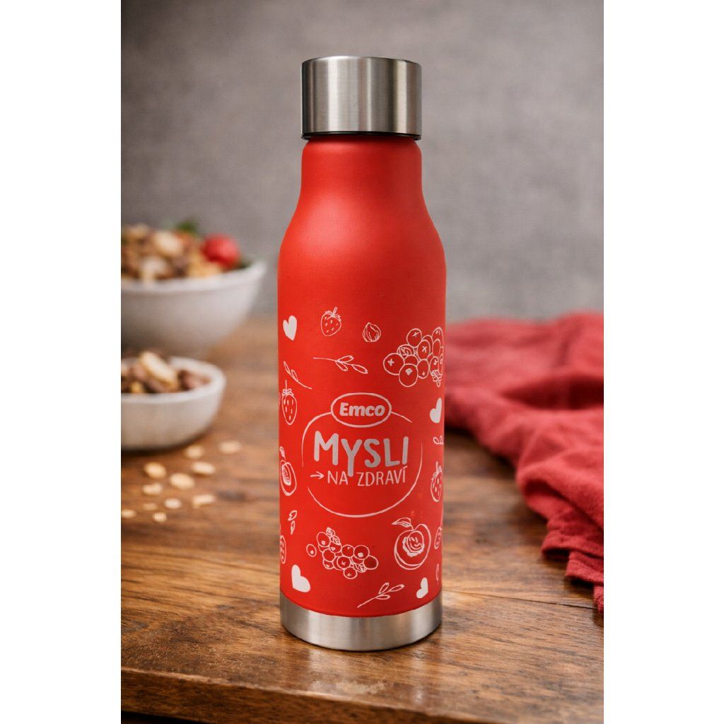 Emco RPET láhev Mysli na zdraví – červená designová, 500 ml