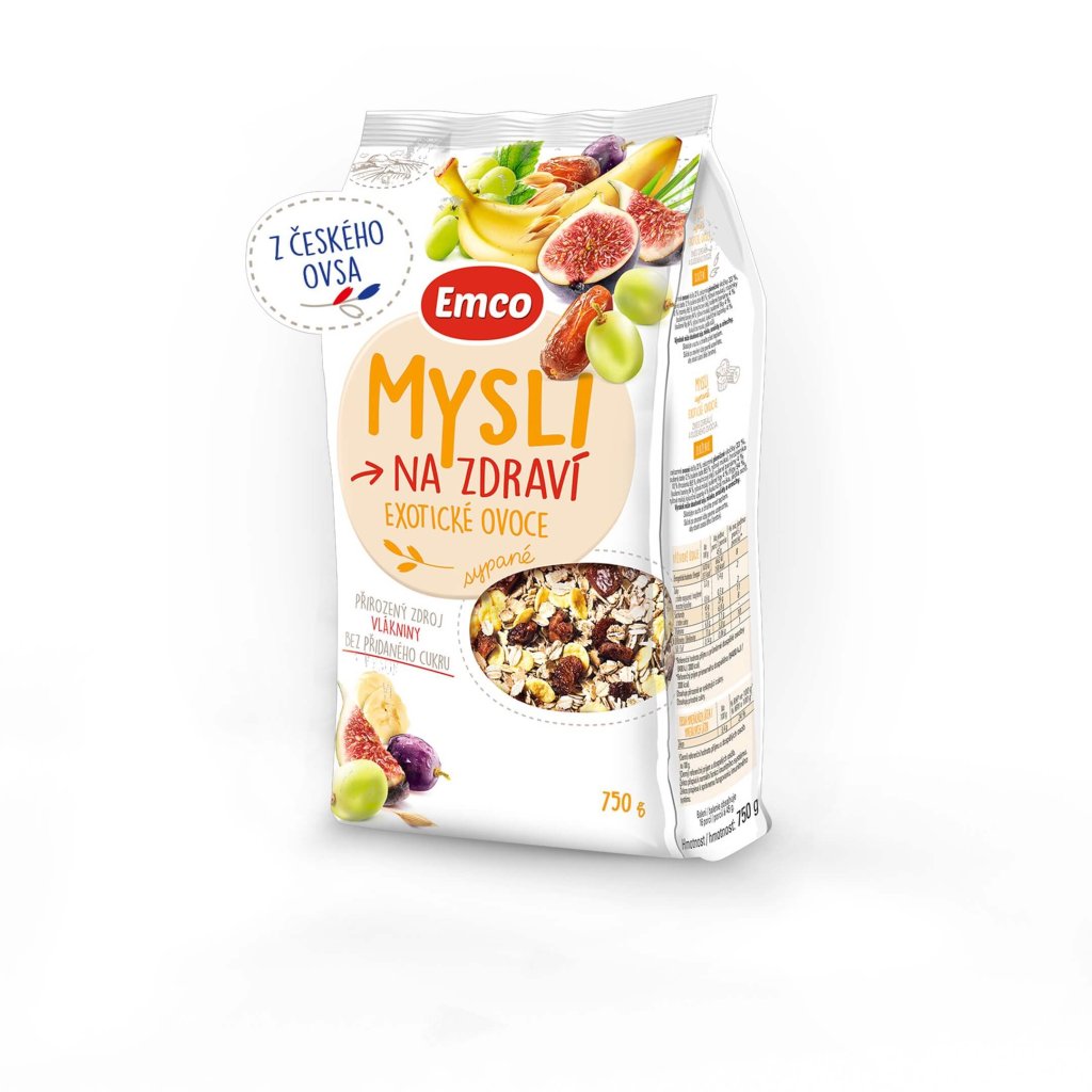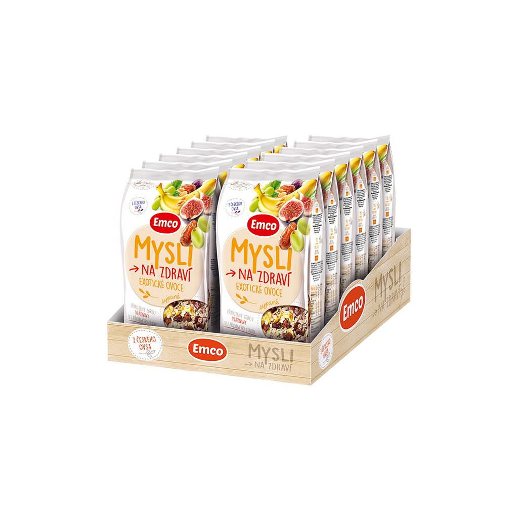 Mysli sypané - exotické ovoce v cenově výhodném kartonovém balení (Směs cereálií a sušeného ovoce, 12x750 g)