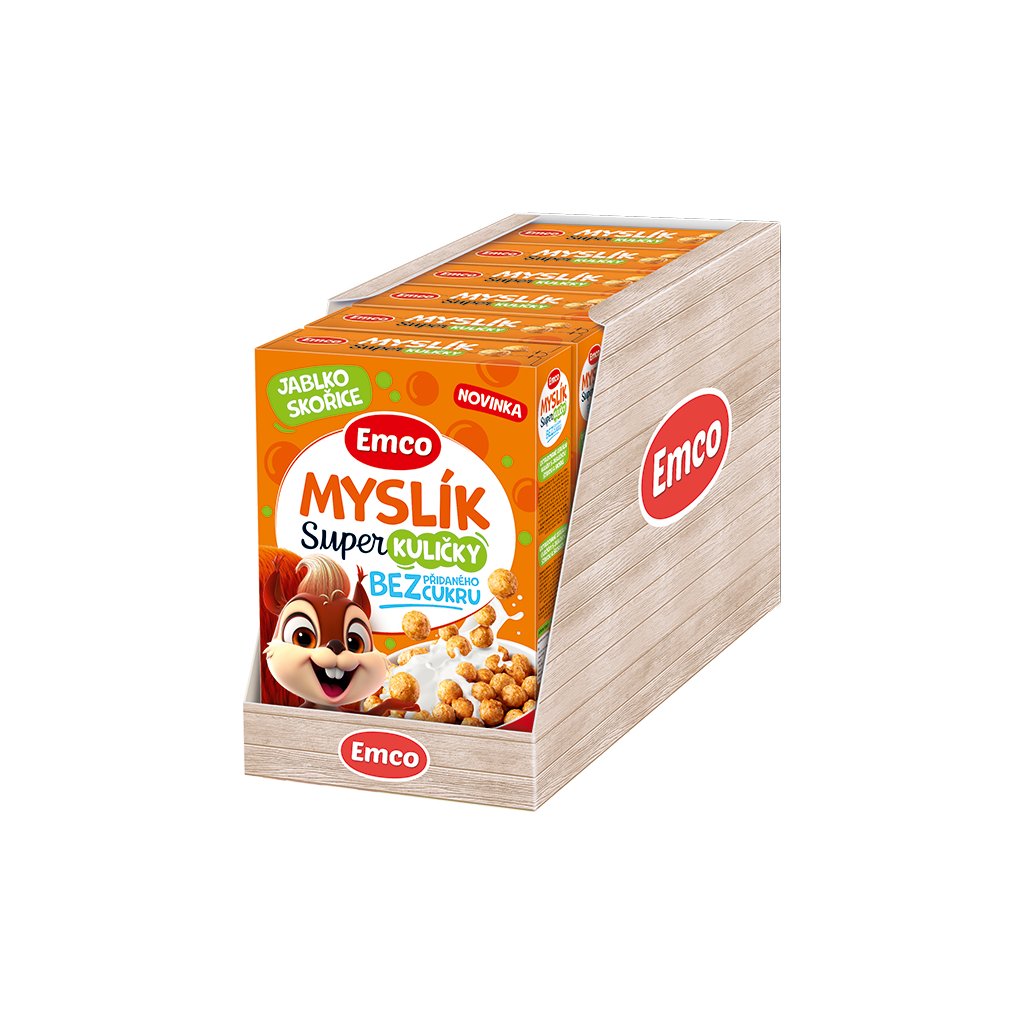 Křupavé snídaňové kuličky, které si děti zamilují a rodiče z nich budou mít radost. Emco Myslík Super kuličky jablko & skořice přinášejí lahodnou kombinaci jemné chuti jablek a voňavé skořice v hravé podobě křupavých cereálních kuliček.