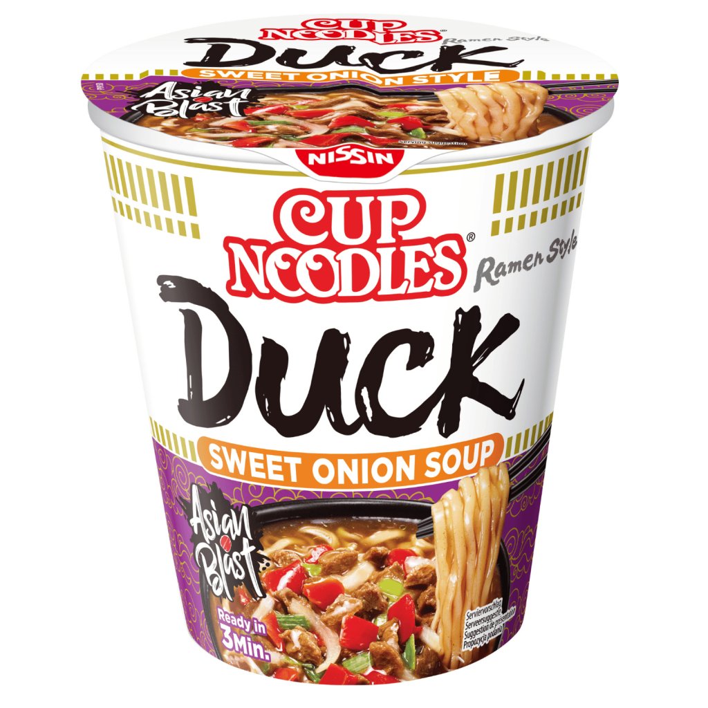 Oblíbené instantní nudle Nissin Cup Noodles s lahodnou kachní příchutí představují rychlé a chutné řešení, když potřebuješ něco dobrého během pár minut. Jemné pšeničné nudle doplňuje výrazný vývar s bohatou chutí kachny a směs zeleniny, která dodává pokrmu plnou chuť i příjemnou vůni.