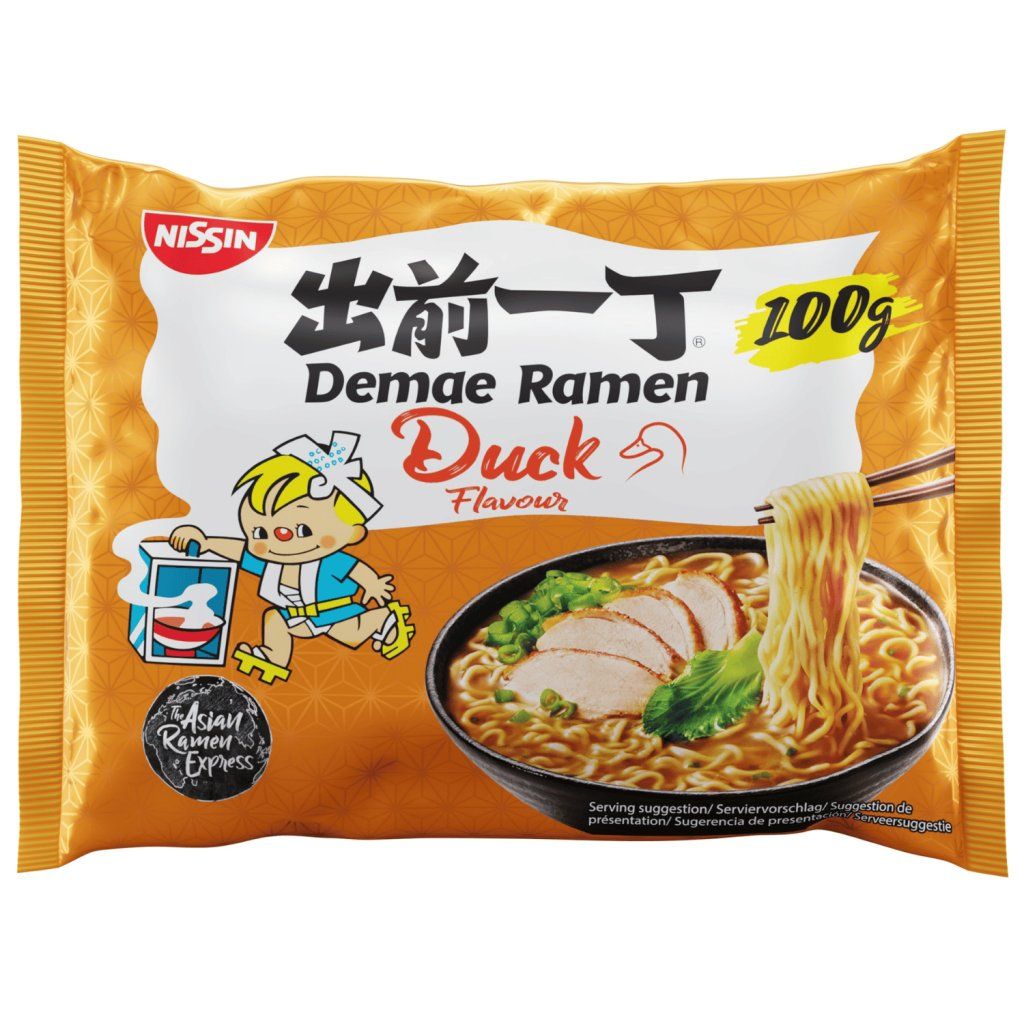 Chutná kachní nudlová polévka Nissin demae ramen v cenově výhodném kartónovém balení 10x100g