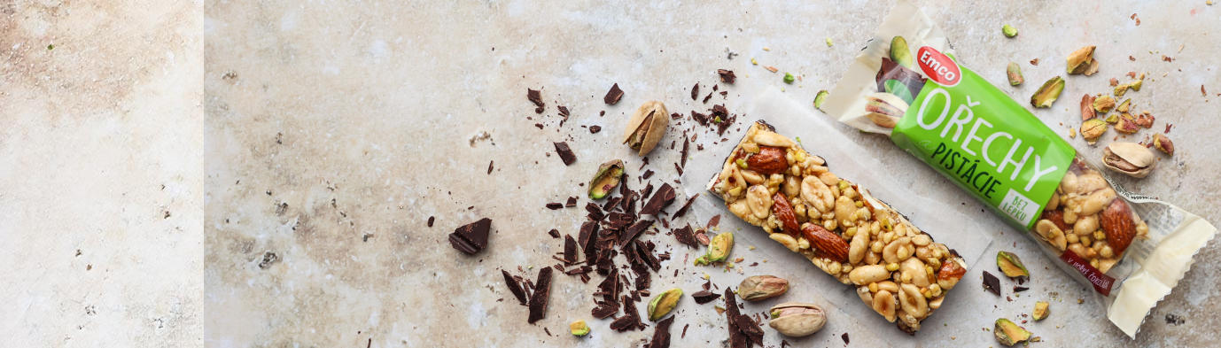 Arašídy, mandle, kešu, lískové ořechy, pistácie, med nebo například karamel. Mmmm, taky už se vám sbíhají sliny? Na našich tyčinkách si zkrátka pochutná každý milovník ořechů – a navíc vás zasytí a dodají energii ve škole, na výletě i v práci.
