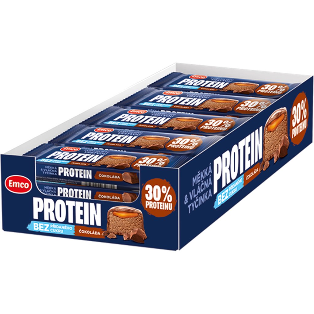 Nová Emco proteinová tyčinka obsahuje 30% proteinu a je bez přidaného cukru. Měkký a vláčný základ tyčinky je tvořen horní karamelovou vrstvou, obsahuje kolagen, a je politý mléčnou čokoládou bez přidaného cukru.