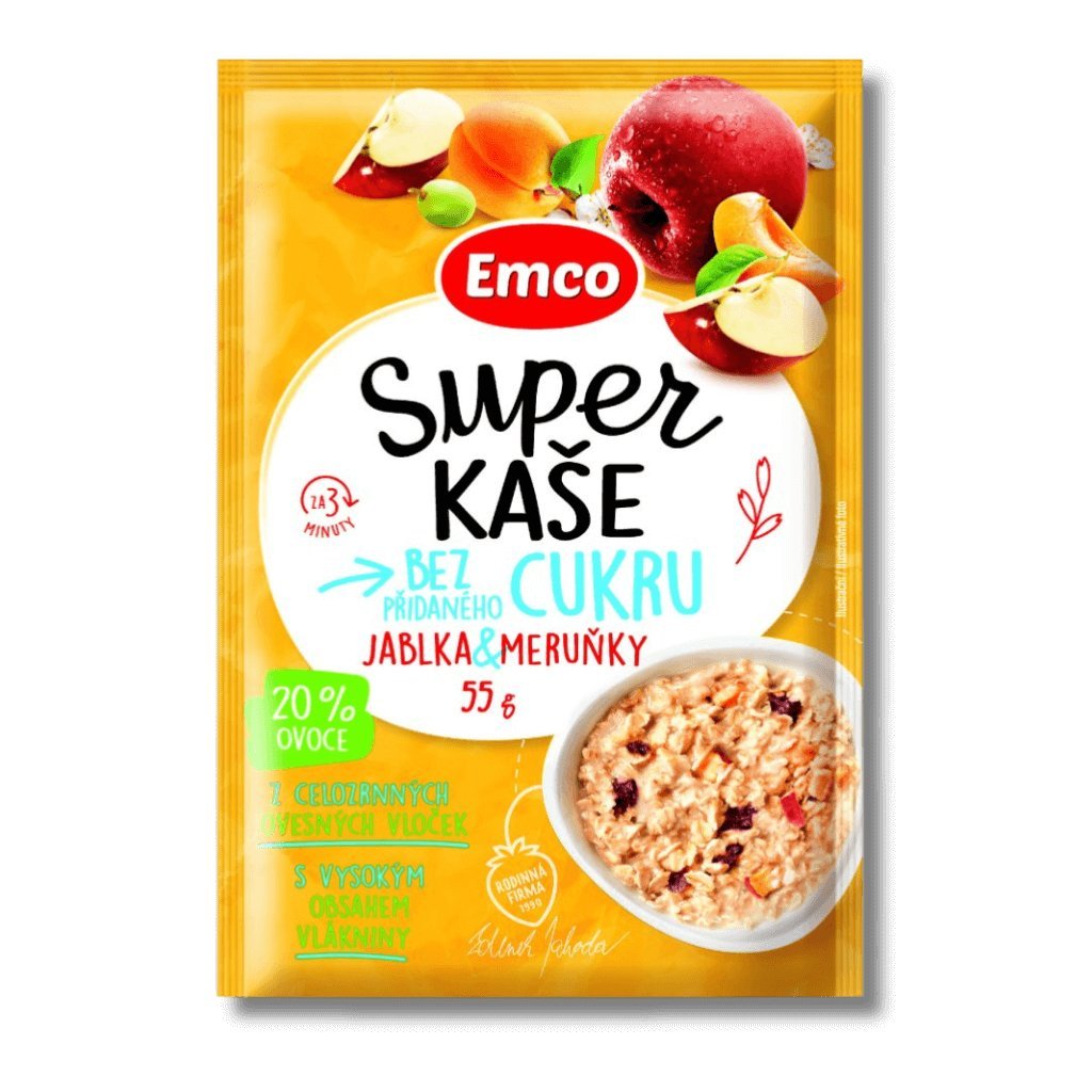 Super kaše bez přidaného cukru jablko & meruňka ( Sypká směs k přípravě ovesné kaše, 20x55 g)